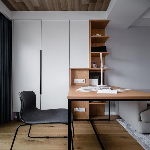 现场打造的墙边柜依旧采用原木色的设计,和整体风格相统一。