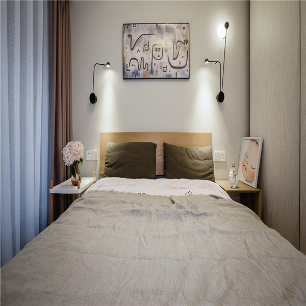 简洁素雅的次卧,穿插了暖黄色温的调和,显得和谐温暖。