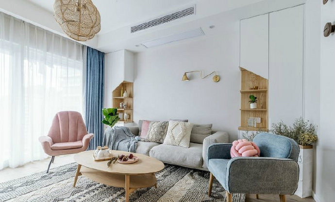 90平清新北欧风两居室装修设计效果图。
