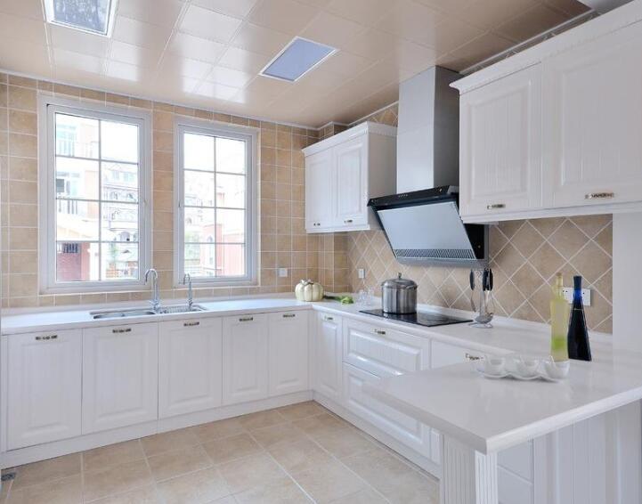 二、天花的选择:在对厨房进行装修时,业主尽量选择平整的天花,而不要选择镂空的天花,这是因为厨房中的油烟很多,在材料的选择上,还是以便于清洁为主要目的,如果选一些镂空的天花,油烟污渍就会聚集在一些缝隙中,给清洁工作带来一定的麻烦,时间久了就容易积累细菌,影响家人的健康。