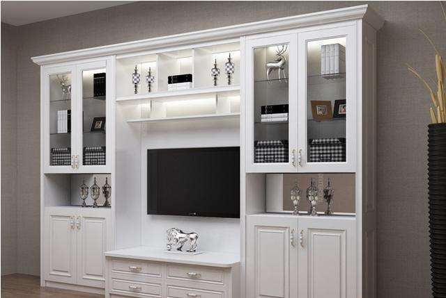 可以使用电视上的浮动柜、内置壁柜、低柜+吊柜的组合环绕电视,不仅大大提高了空间利用率,而且看起来非常分层和实用。