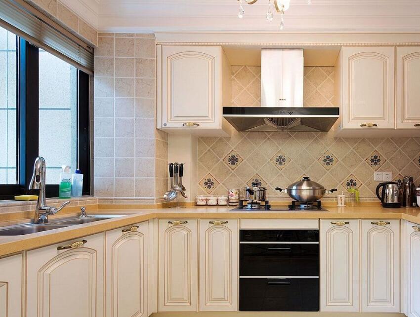 3、L型厨房:各种户型中最常见的布局,以墙角为基点,在狭长型空间中,呈L型布局,小户型厨房做成一字型或L型厨房,不浪费每一寸空间。一般会把水槽在L型的小横处。