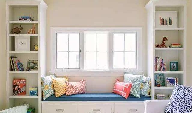 木工板是常见的用来制作飘窗的材料,用木工板做台面没有冰冷的感觉,看起来比较简洁,有一个非常大的优点就是方便把飘窗弄成收纳空间,增强家居收纳功能。
