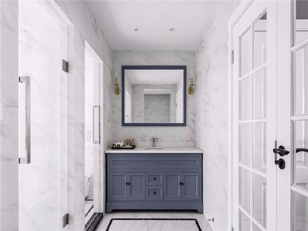 同时,因为悬浮的家具会制造出空间无限的错觉,所以,选择尽可能多储物空间的梳妆台,可有效规整卫生间的生活用品。