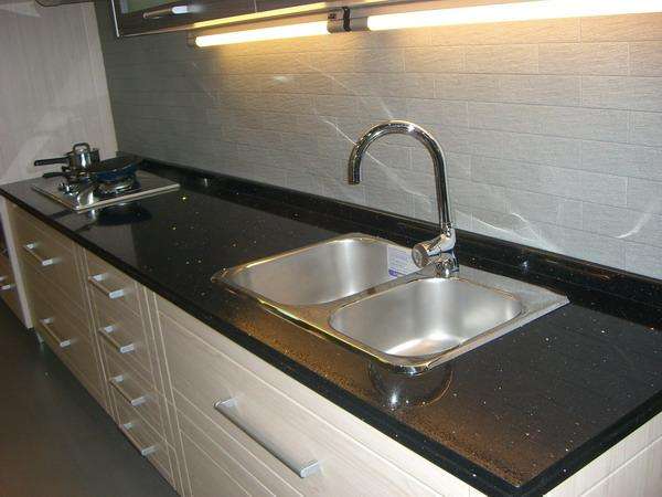 3、人造石:是人工后期加工处理的混合物制品,主要合成成分有树枝、水泥、石粉、粘合剂,是新型的一种复合材料。外形跟大理石一般,辐射少,毒性非常低,特别是接口处能做到天衣无缝的完美结合,同样也是现代橱柜台面石的新宠儿。