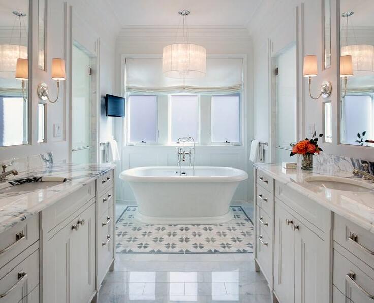 墙面砖在选择时,以美观易打理为原则。地砖最好选择防滑,铺贴时,地漏处要低于整个地面,便于积水排出。地砖铺贴采用湿铺法。