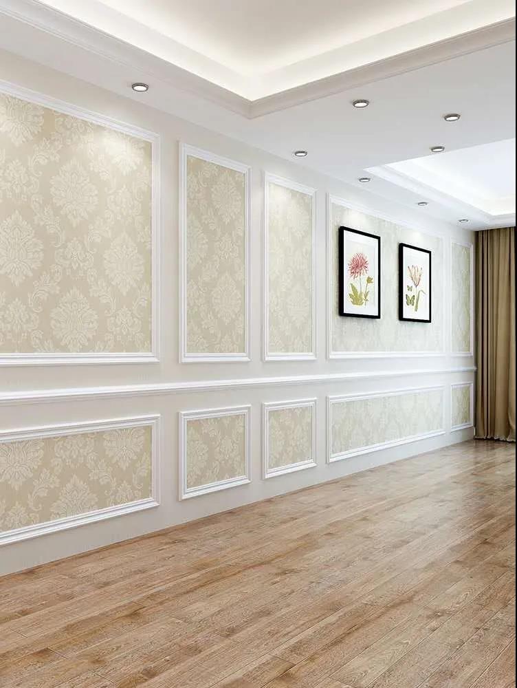 作为一整套的建筑线脚,墙面线框应该配合顶角线、踢脚线、腰线、门框线、窗框线等来做,做出整体的效果。