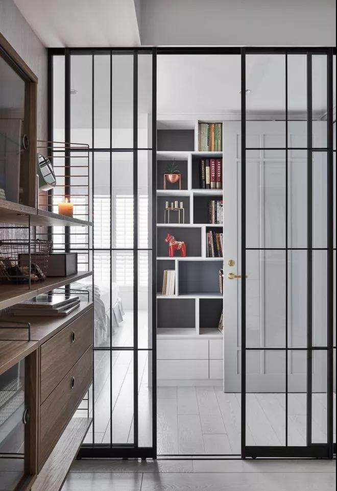 但有时候户型硬伤对采光有大限制,每个空间不够通透,在这种情况下玻璃隔断有着奇效,兼顾分隔区域和空间通透。