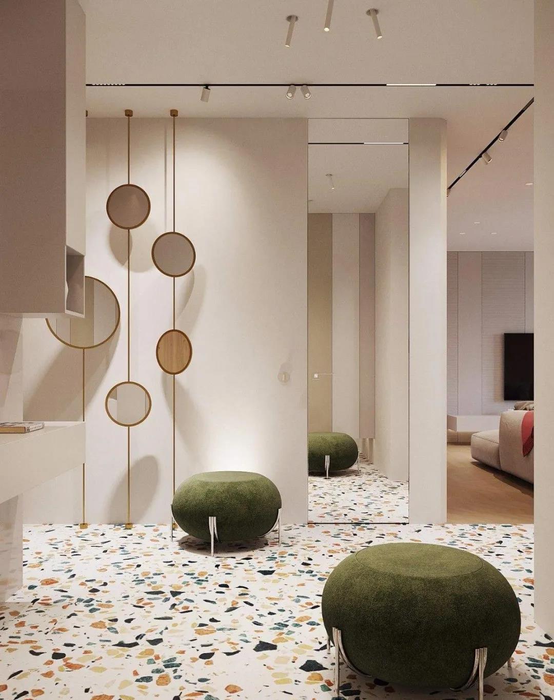 先确定整体风格和想要的墙面颜色,再来做水磨石地面,非常美!