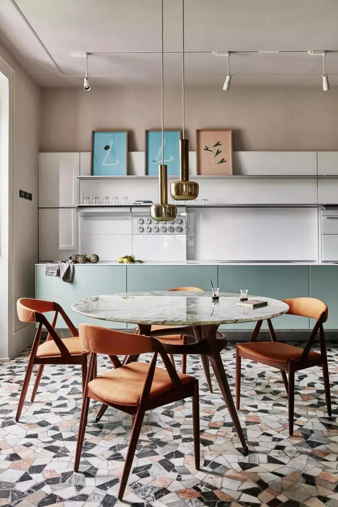 餐厨区域油烟多,而水磨石易清洁,这对cp必须锁上!