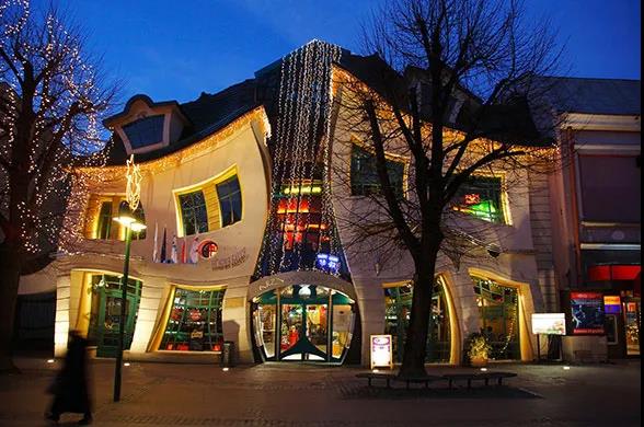 Krzywy Domek建于2004年,灵感来自童话般的意象,是一个位于波兰索普特当地购物中心的一个旅游景点,里面有各种各样的商店、水疗、沙龙、商务会议设施和医生办公室。