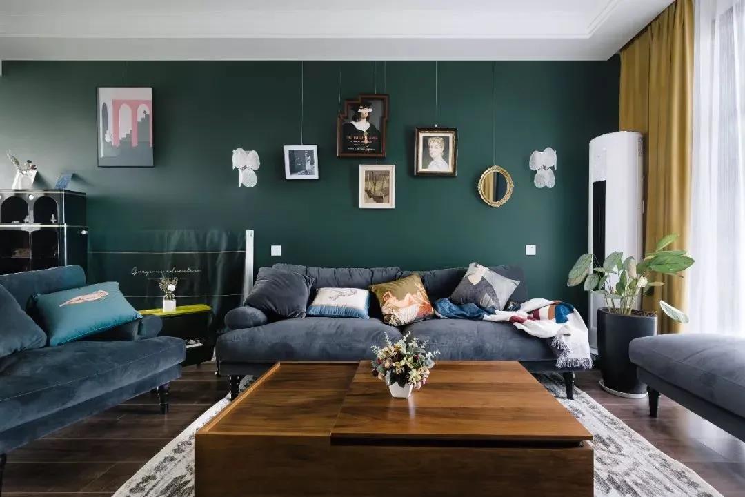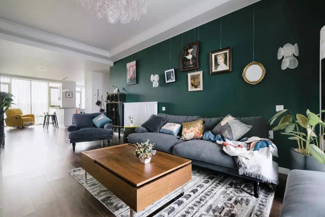 绿色背景墙,搭配不同的墙面装饰,打造满满的复古风。