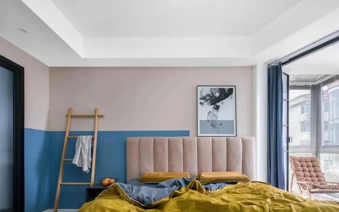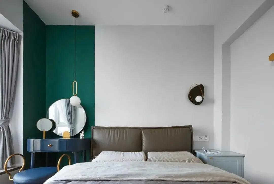 卧室里刷上半墙,正好装饰了床头位置,完全可以替代床头板的功能