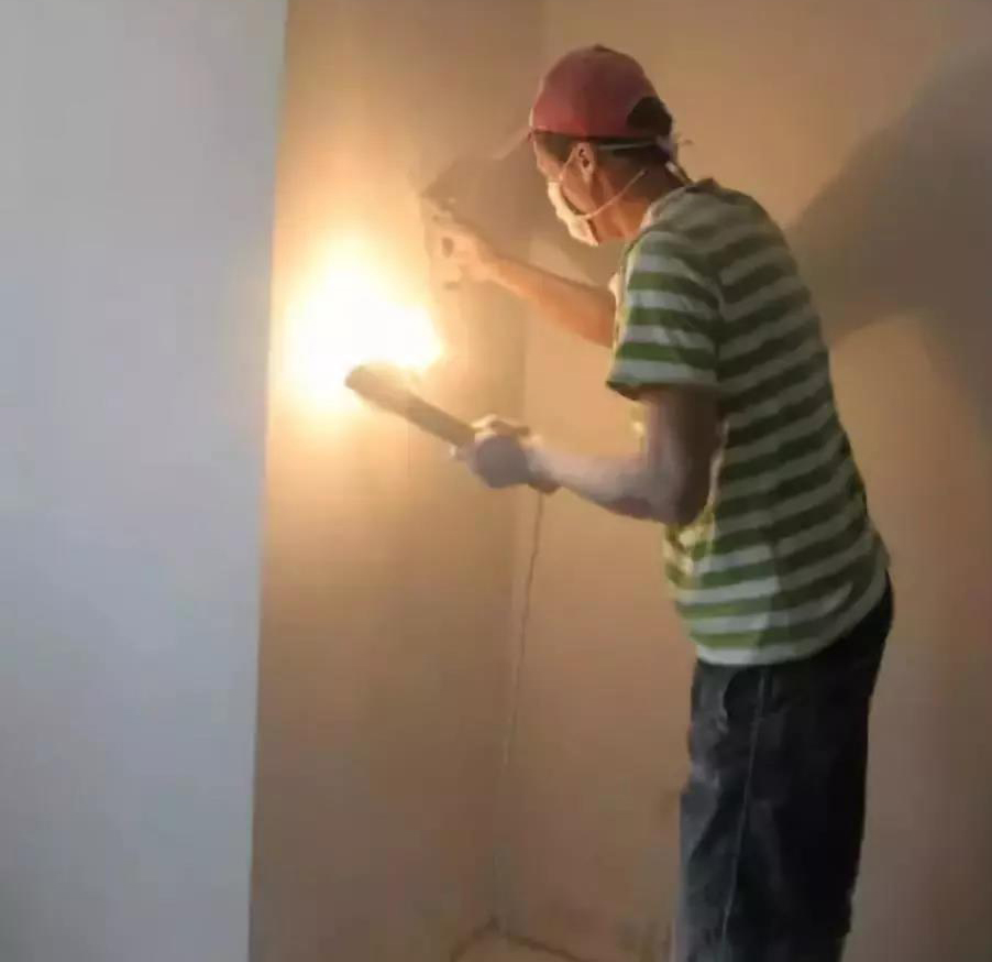 如果你在装修工地上看到有工人师傅,左手拿灯泡、右手拿砂纸磨墙,那就是在打磨墙面没跑了!