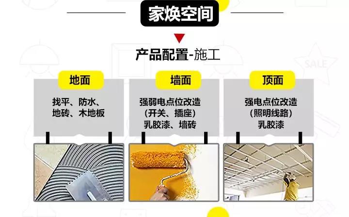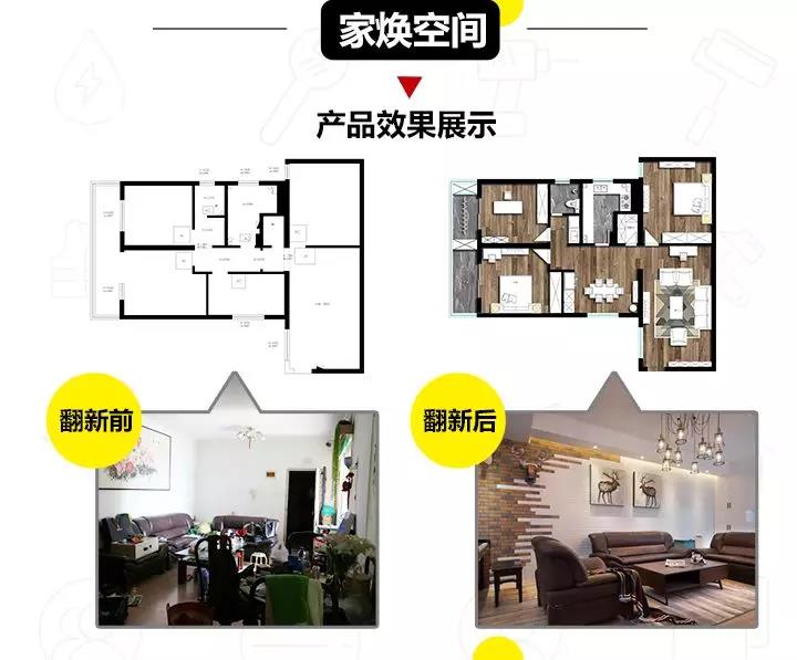 家先生场景化解决方案,提供从翻新前的免费上门、设计、主辅材选择,到翻新中的成品保护、专业施工,再到翻新后的垃圾清运、空气治理等一站式服务。