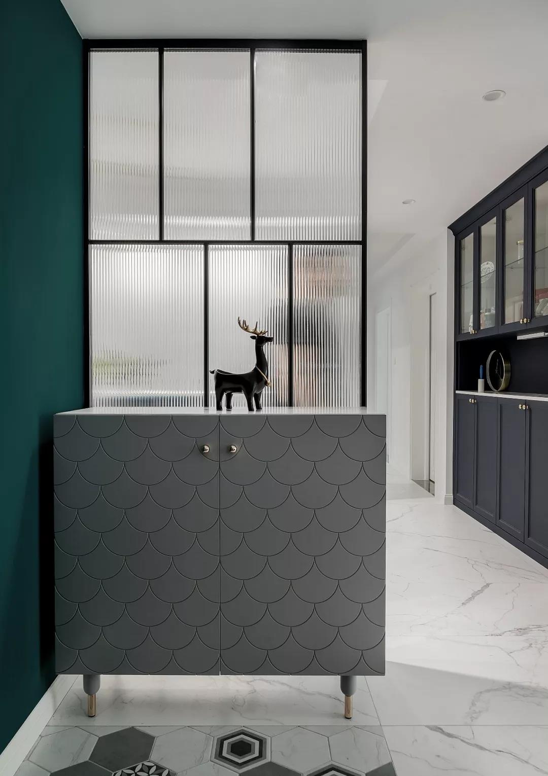 长虹玻璃顶天立地的竖直条纹还可以在视觉上拉伸空间,增加房间纵深。对于层高较低的户型来说,是缓解压抑的一大利器。