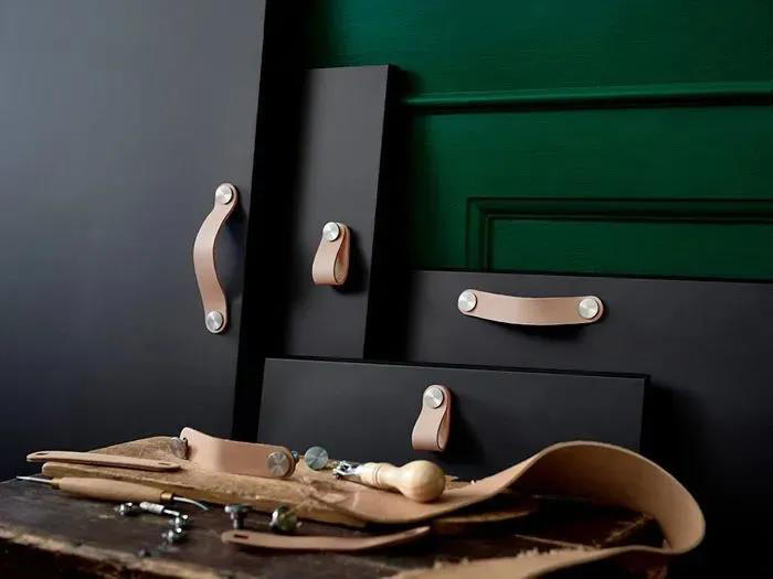 皮革拉手除了颜色多变,就连安装姿势也各有千秋。