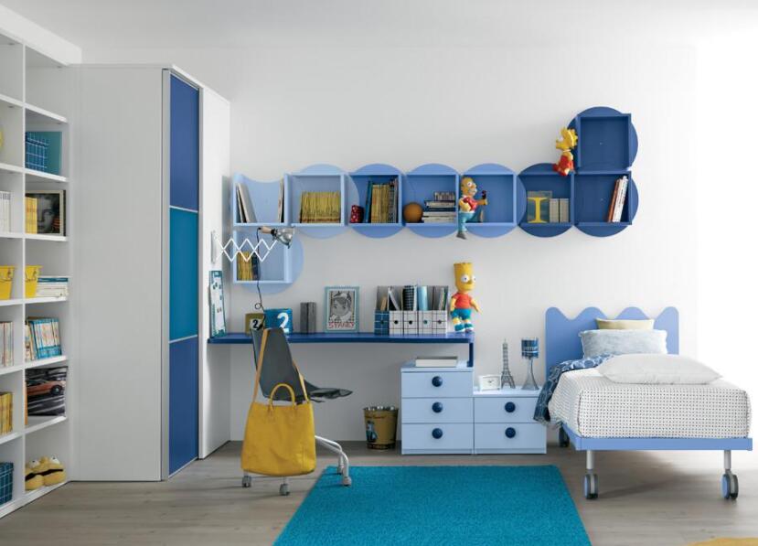 1、冷色调:主要颜色有蓝、紫、深灰、黑等,多偏向于男孩子的房间。设计师建议不要大面积使用这种暗色,因为暗色会让人产生压抑之感,在设计时可搭配一些明度较高的图案或颜色,对视觉进行中和,让整个房间充满层次感,也会有很好的效果。