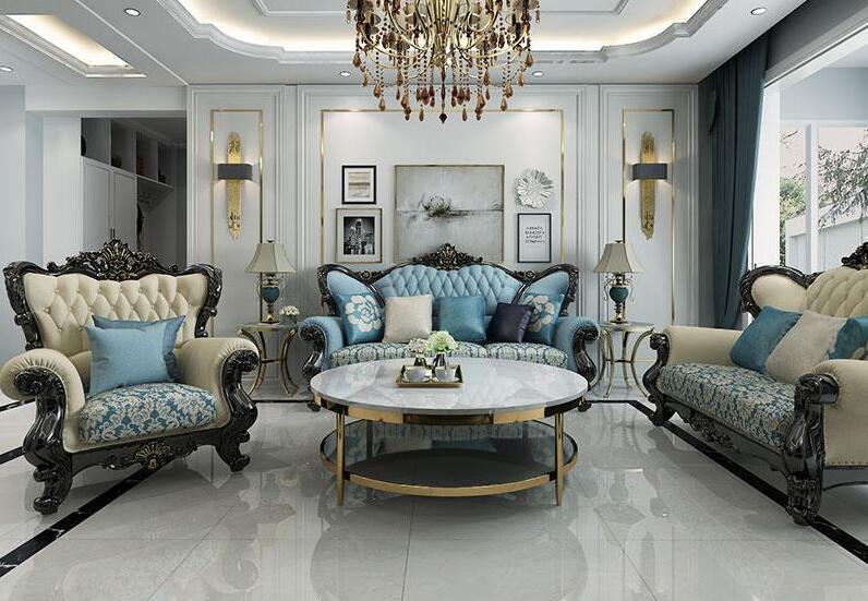 法式装修风格拒绝浓烈的颜色,偏爱一些清新淡雅的蓝色或是绿色,比如一抹淡淡的小碎花,也就是法式装修风格的美好演绎,所以在法师装修软装搭配上我们就不要选择哪些色彩比较浓烈鲜艳的布艺沙发,而要选择清新淡雅的浅色调碎花布艺,柔美的色彩散发着法式的浪漫风情。