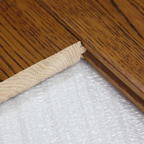 由天然木材制成的实木地板,可以自动调节湿度,冬暖夏凉,脚感舒适,经久耐用,但这种地板后期保养麻烦,需定期打蜡、上油,保持表面的光泽度,定期养护。