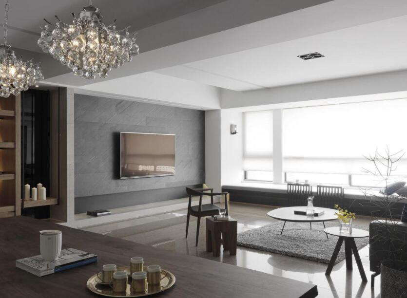 不够亮堂的客厅,可以使用玻璃、金属等通透感比较强的材料,镂空设计也会起到很好的装饰调节效果,材质的质感要做到搭配一致,互相呼应,会让空间在视觉上产生延伸感,通透的空间是弥补光线不足最大的法宝。除此之外,对于客厅背阴的情况,客厅尽量不要养大型绿植,看起来光线更暗沉。