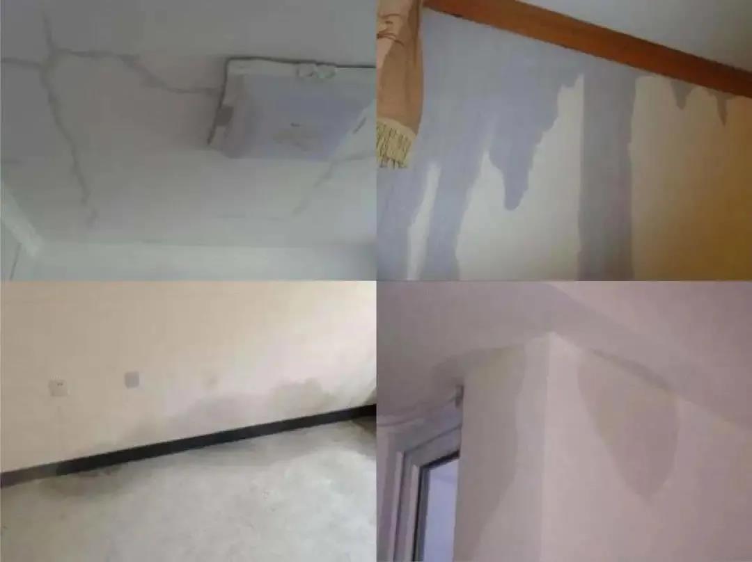 ①墙面返潮发霉,尤其是卫生间外面的墙体。