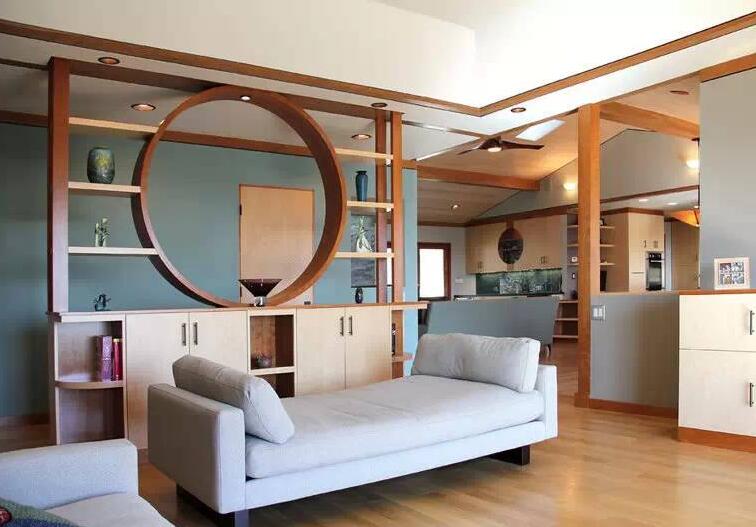 架式的隔断方法,主要是采用上半部分开放、下半部分封闭的博古架,这样的隔断方法已经流行好多了,从20世纪末的时候很多都是采用这种隔断方式进行装修房子,因为这种方式既可以实现居室的隔断效果,也可以让整体空间更宽阔,收纳陈列的物品。