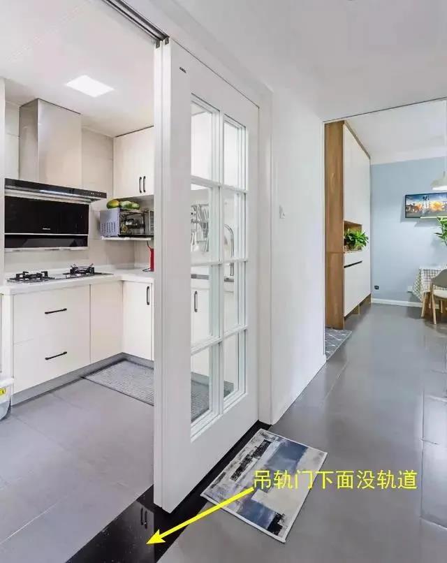 家里如果有地方要做推拉门,建议使用吊轨门,而不是安装普通的地轨推拉门。