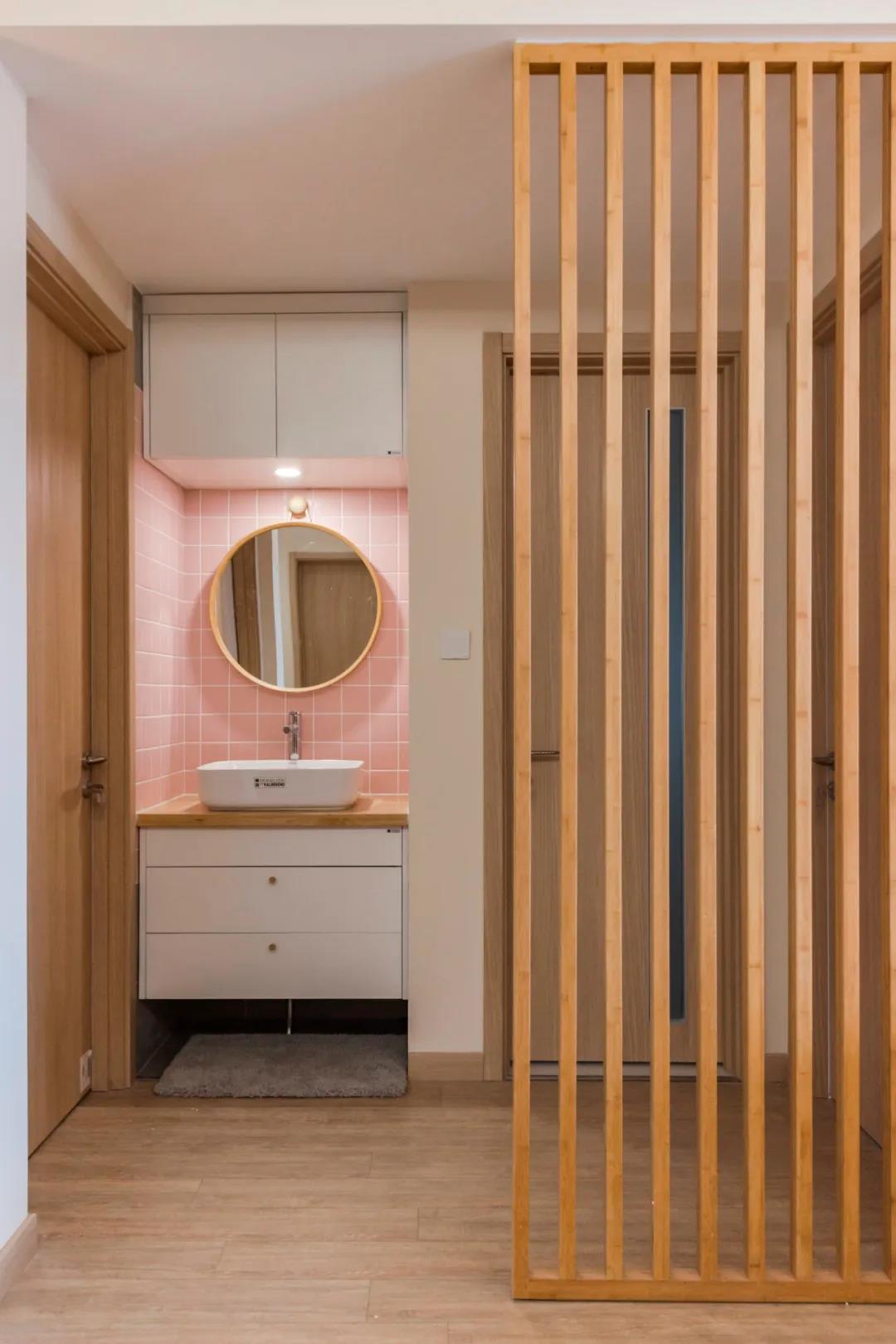 这样干湿分离的设计不仅能起到阻挡视线的作用,也能缓解家里人多上洗手间打架的情况。