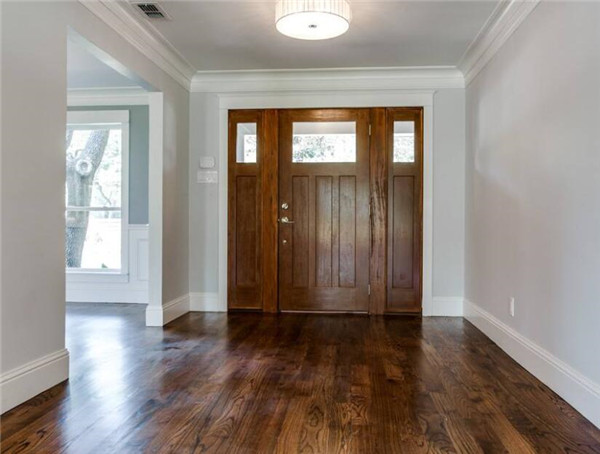 实木地板是木材经过烘干、打磨、深加工后精制而成的地面装修材料。通常具有天然的花纹,优质的脚感,简单的施工工艺,安全的使用性能及装修效果美观的特点。