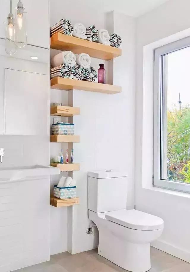 卫生间和厨房一样,面积小,但要放置的东西可不少。如日常的牙杯、毛巾,还有沐浴露、洗发露等。