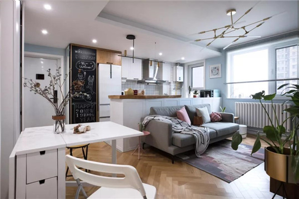 小户型面积有限,充分的收纳可以达到节省空间、延展视觉的效果,但利用空间要合理有度,过度收纳会使空间更显密集和拥挤,令人产生压抑之感。