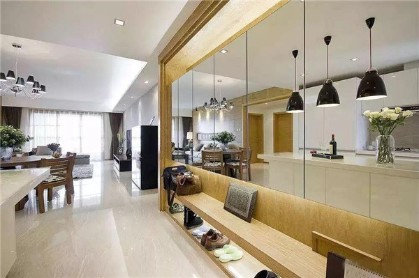 建议:要选择合适的位置进行点缀运用,比如在视觉死角或者光线暗角,以块状或者条状布置为宜,忌相同面积的镜子两两相对,那样会使人产生不舒服的感觉。