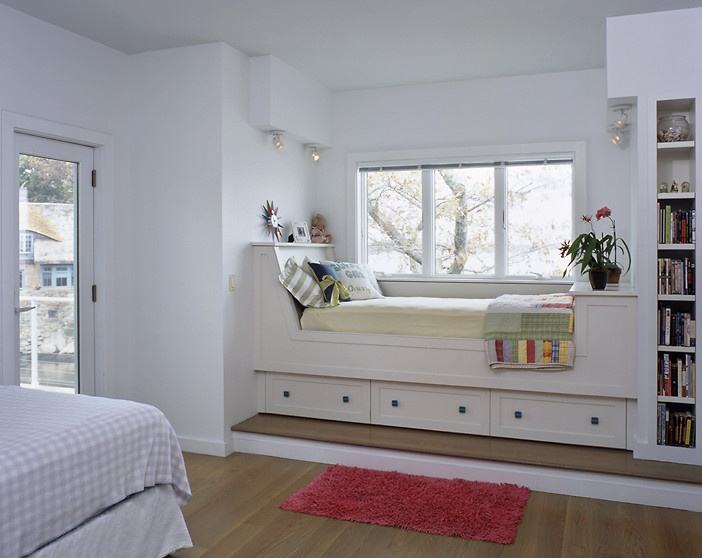 木工板是常见的用来制作飘窗的材料,用木工板做台面没有冰冷的感觉,看起来比较简洁,有一个非常大的优点就是方便把飘窗弄成收纳空间,增强家居收纳功能。