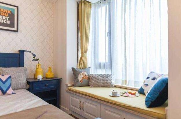 对于那些小户型的的卧室来说,由于空间面积有限,因此我们在对卧室飘窗设计设计时,最好在下方增加些储物空间,这样能大大增加我们的收纳空间,同时我们还可以将飘窗部分墙面设置成织物架,可以在上面摆放些书籍。