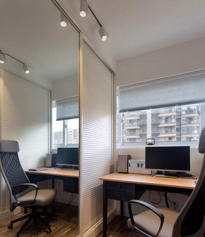 家中的书房,在很多时候,其实是空闲在那边的,其实可以丰富一下书房这个小房间的功能,在书房内隔出几平方,兼做衣帽间。家先生