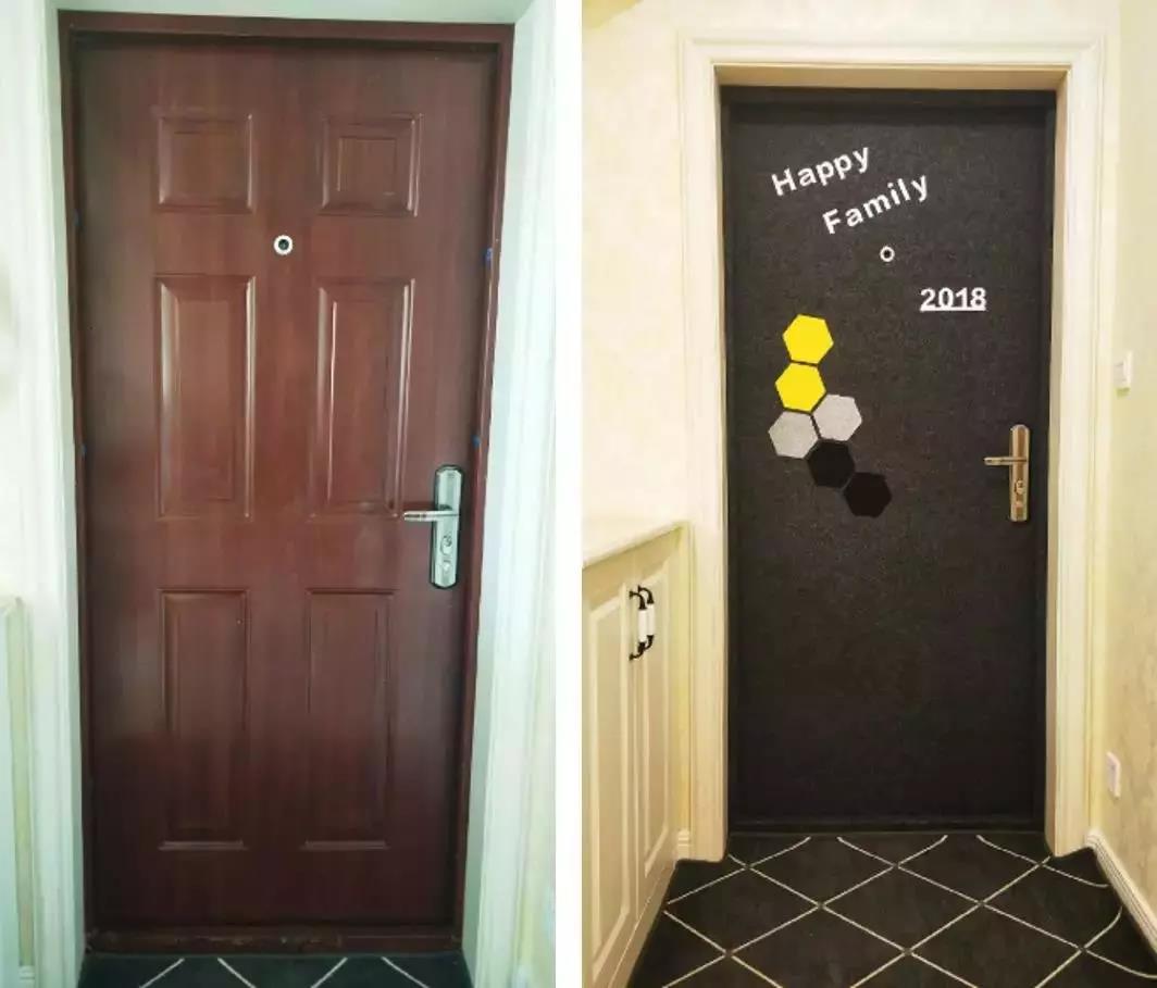 毛毡门贴使用前后,一眼就能看出差距,粘贴后质感十足。除了黑色,毛毡还有白色、浅灰、深灰等多种颜色可供小伙伴们选择。