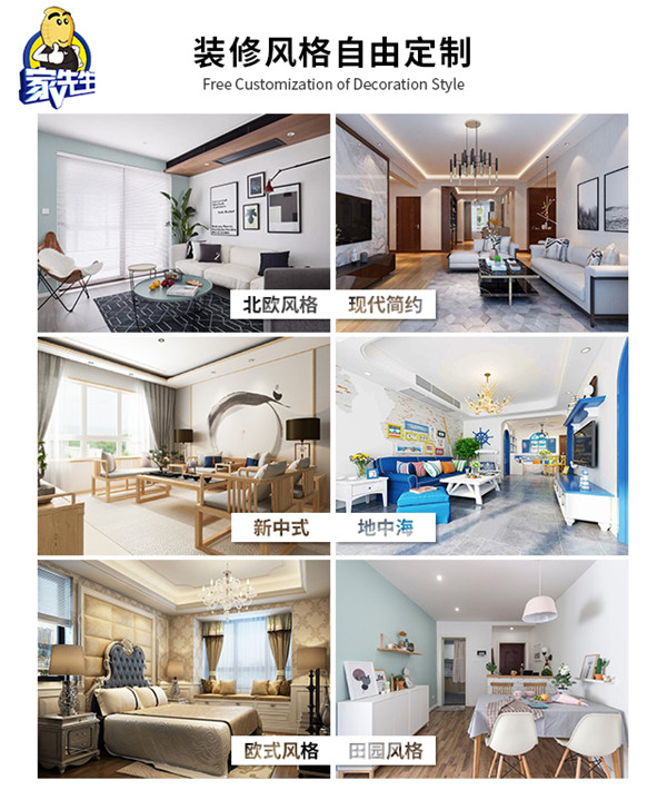 家先生提供包量房、包设计、包主材、包辅材、包施工、包配送、包监理、包售后的一站式服务,在各个环节节约成本。同时,通过接入国内知名供应链与家先生自有家集市品牌双管齐下,精选200多家国内外一线大牌,不仅保证品质,更能享有大牌底价,而厂家直供的方式,更能为业主至少减免30%的费用。