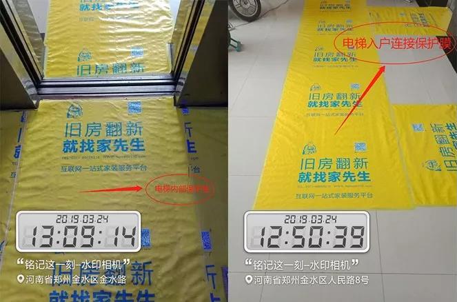从住户楼层电梯开始采用家先生保护膜进行覆盖,直至客户家中。