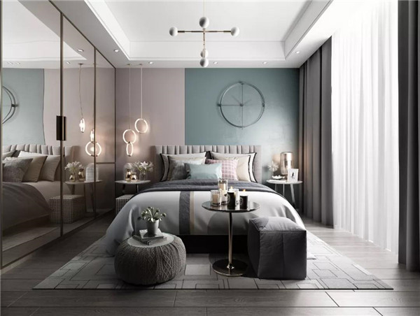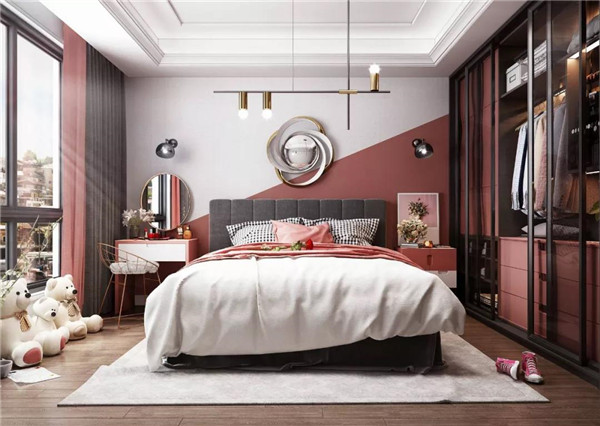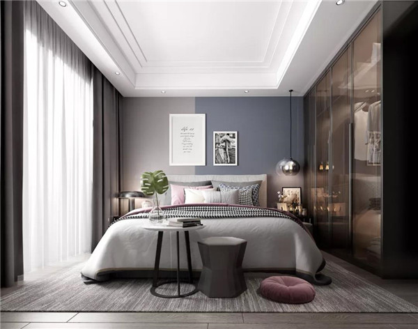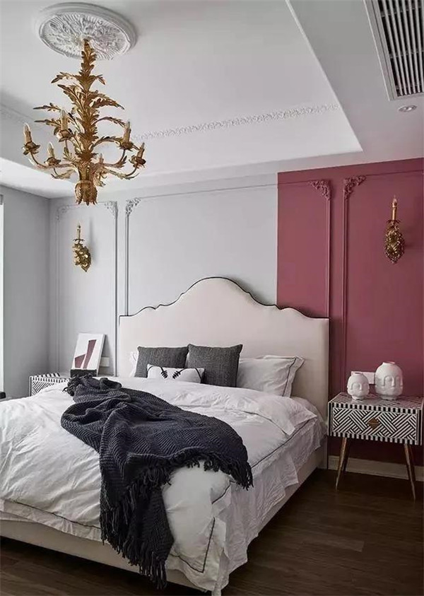 在上色方案上,仅床头背景墙上色,这是目前最常见最容易做好的背景墙方案。如果有条件的话,撞色设计会让整个空间时尚立体起来。