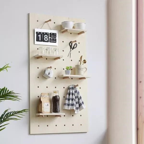 为了不留下脏印子,相信大多数人都会在柜子和墙面留着这样一条缝隙空间。不过从现在开始别再浪费掉这些面积了!像洞洞板这样的"纸片形收纳"可以用来收纳清洁工作、做饭用具等物品。