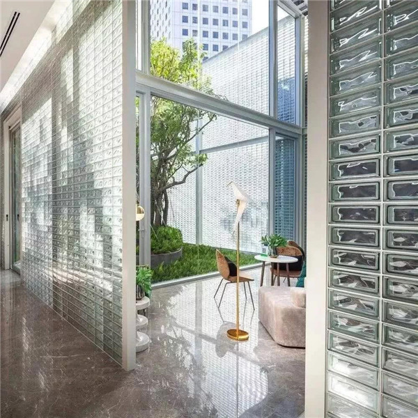 玻璃砖相比常规玻璃隔断有良好的隔音性,因为其坚固厚实,采光同时私密性可以保证。