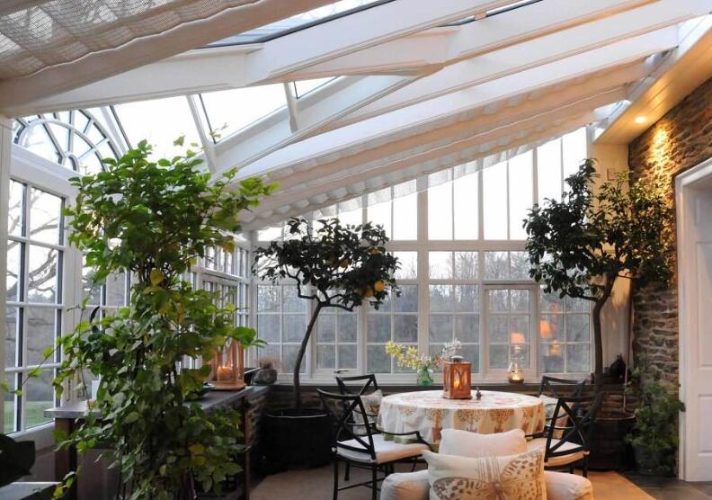 4、弧形顶别致大方如果是阳台面积较大又位于顶楼,应该属于“露台”。可在阳台上加上透明的弧形采光顶,就可使阳台当作房间使用。