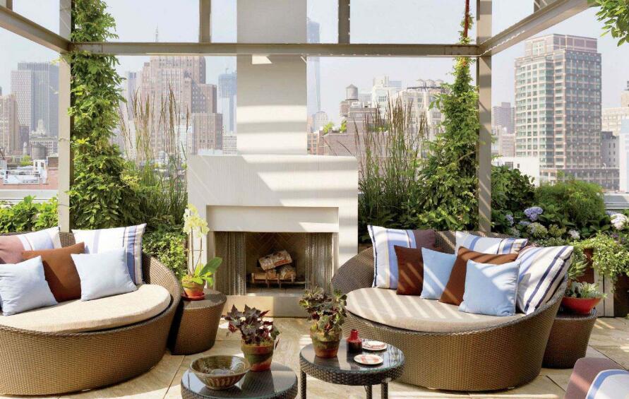 1、留一片绿意空间在现代居室中,人们往往远离大自然,因此需要在空间中多增添一些绿色。若喜欢养花养草,可把阳台一角设计为一个花草展区,墙面上绿色的小砖就是最好的背景。虽然面积有限,但能给主人提供一个休闲健身的好去处。这些园林造景手法,用在阳台上,会给人浓浓的休闲气息。