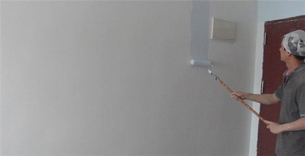 4、上底漆:底漆必须要刷匀,保证墙面每个地方都刷到,如果墙面吃漆量较多,底漆最好适当的加一点水,以保证可以涂刷均匀。不要以为是底漆用差一点的滚筒就行了,底漆的涂刷效果能直接影响面漆的效果,要用和面漆同样材质的滚筒。