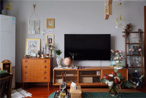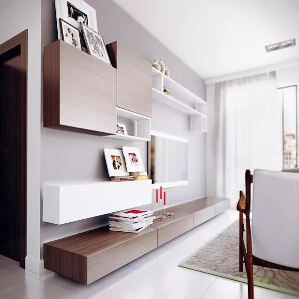 简单来说,就是“大量留白+电视柜+绿植、饰品点缀”,适配北欧、日式等风格。