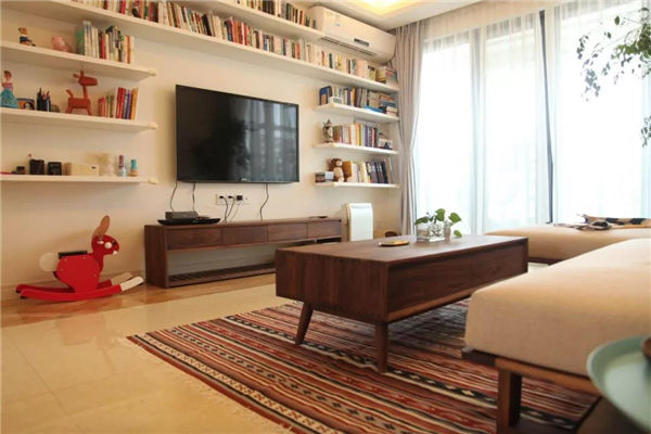 对于很多小户型来说,一面空空的电视背景墙显得有些浪费,当然要将其与收纳结合起来。