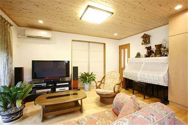 为了能做一个美观的吊顶,家,先生在安装的时候先取下旁边已装好的杉木板,对比将其余板材四周调节到最佳状态后再安装。看看是否朝向一致、纹理整齐、接缝均匀等等,不得留有缺棱掉角、锤印等缺陷。