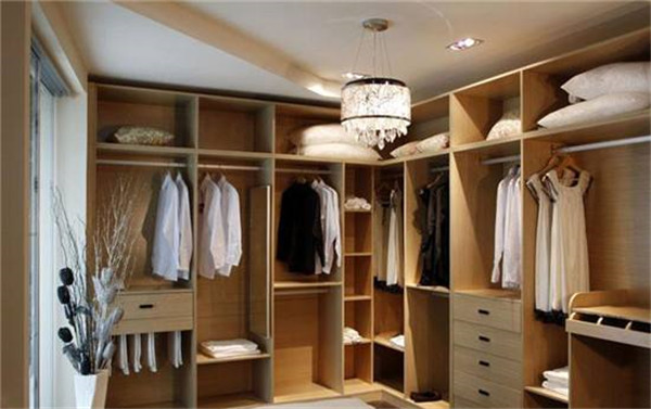 这种形式的衣帽间需要利用一面空墙,它的优点是空气流通性更好,而且更加宽敞。不过利用开放式衣帽间的同时要注意私密性,否则会让整个空间显得很凌乱。所以在建设这种衣帽间的时候,需要注意防尘。可以用防尘罩来悬挂衣物,这样会让整个空间看起来更为整洁。这种衣帽间的缺点也很明显,就是防尘性比较差,所以要注意卫生的问题。