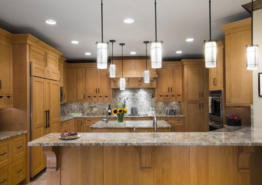 厨房翻新原木色橱柜设计案例效果图。